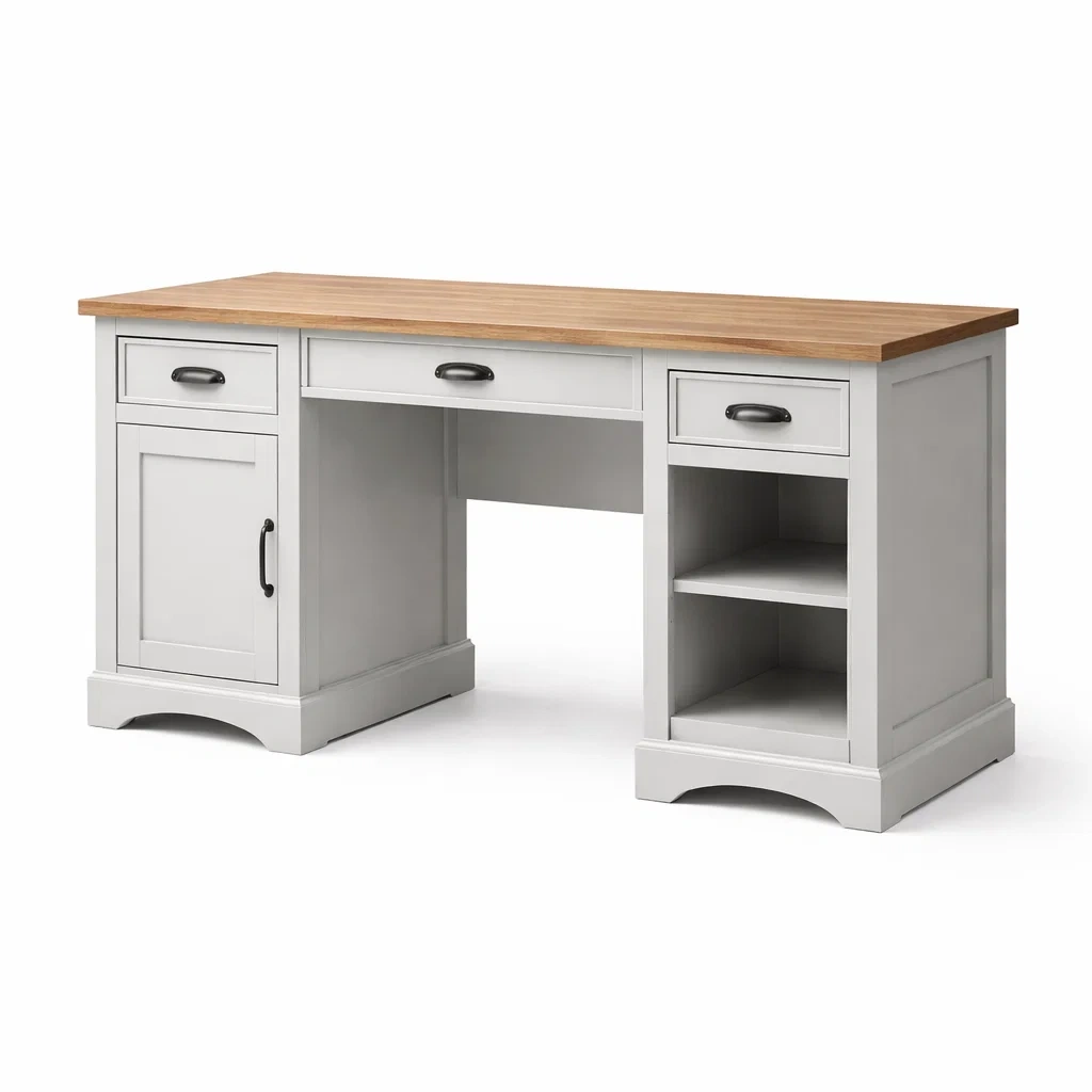Bureau en bois massif avec tiroirs et support en croix