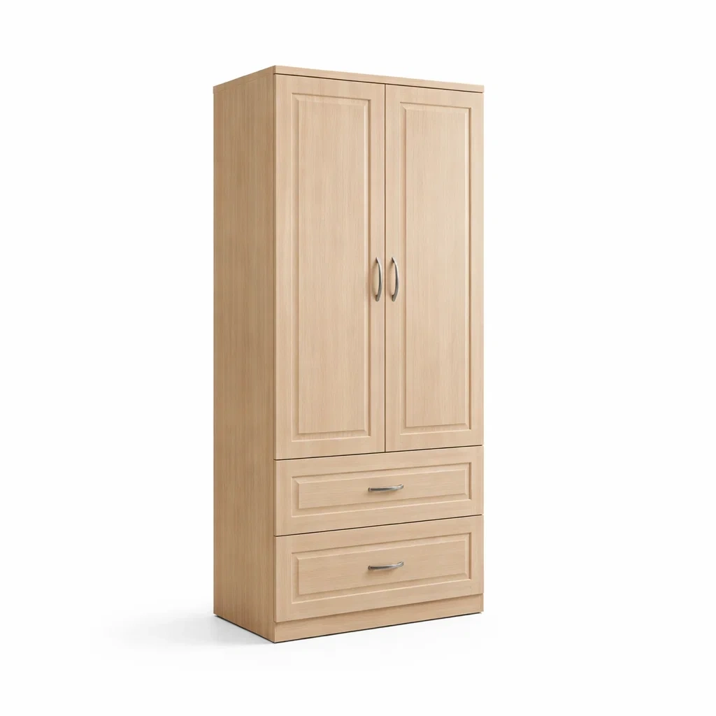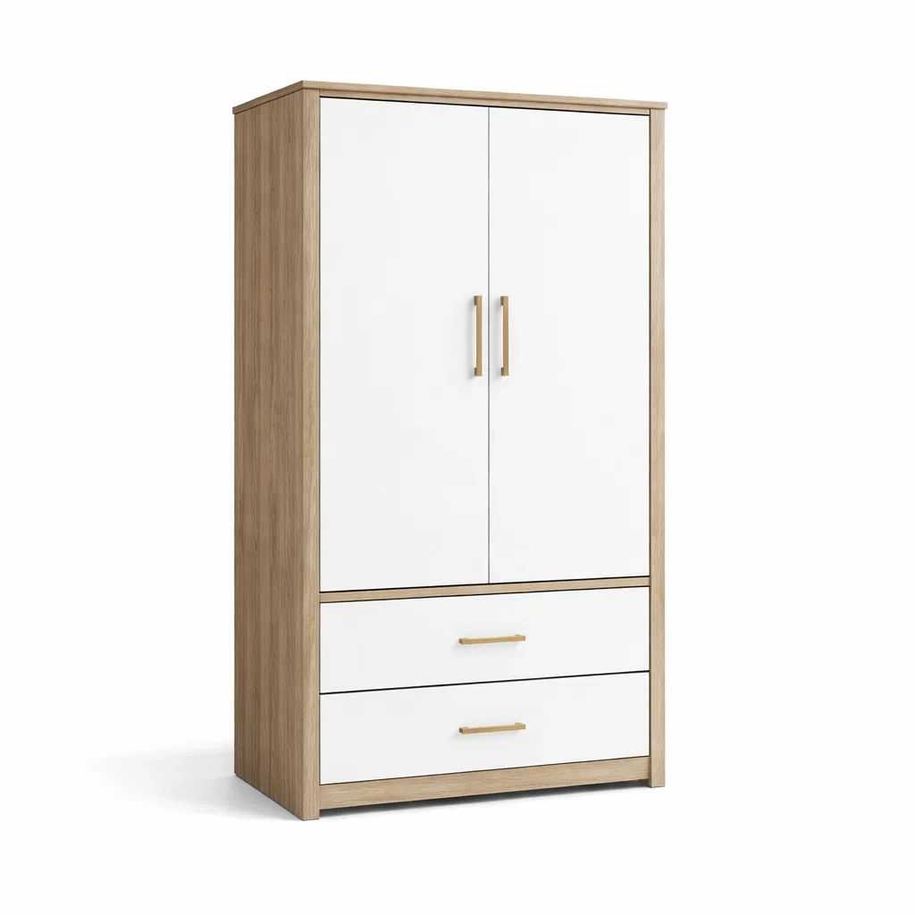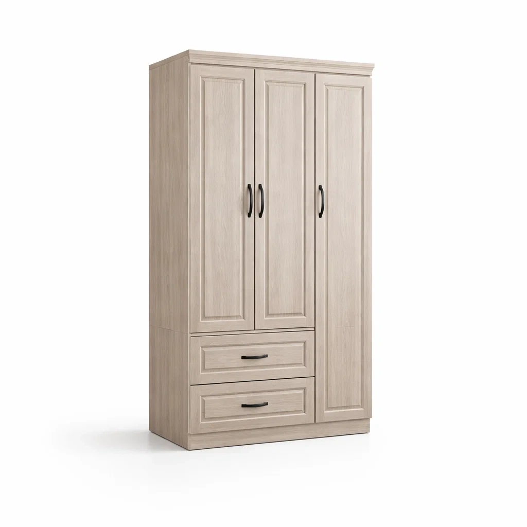 Armoire en bois composite chêne beige avec portes et tiroirs