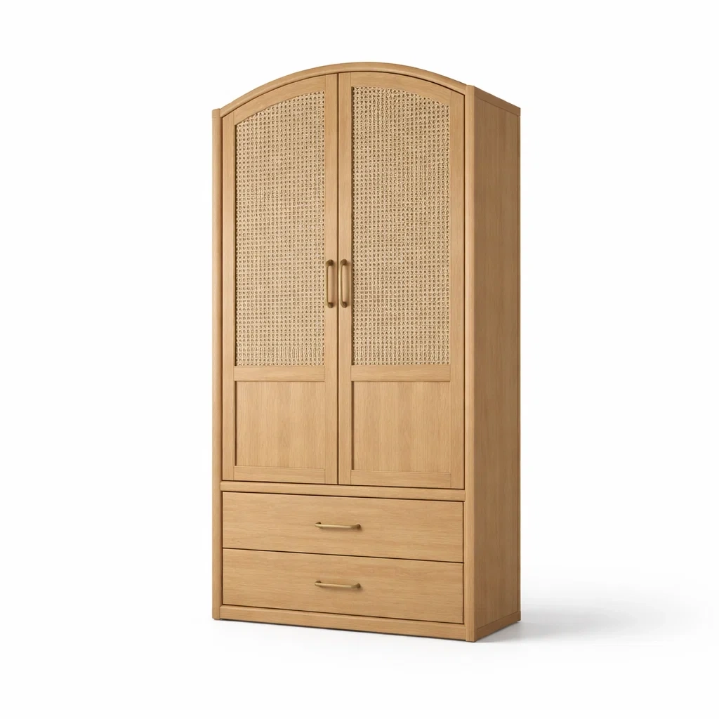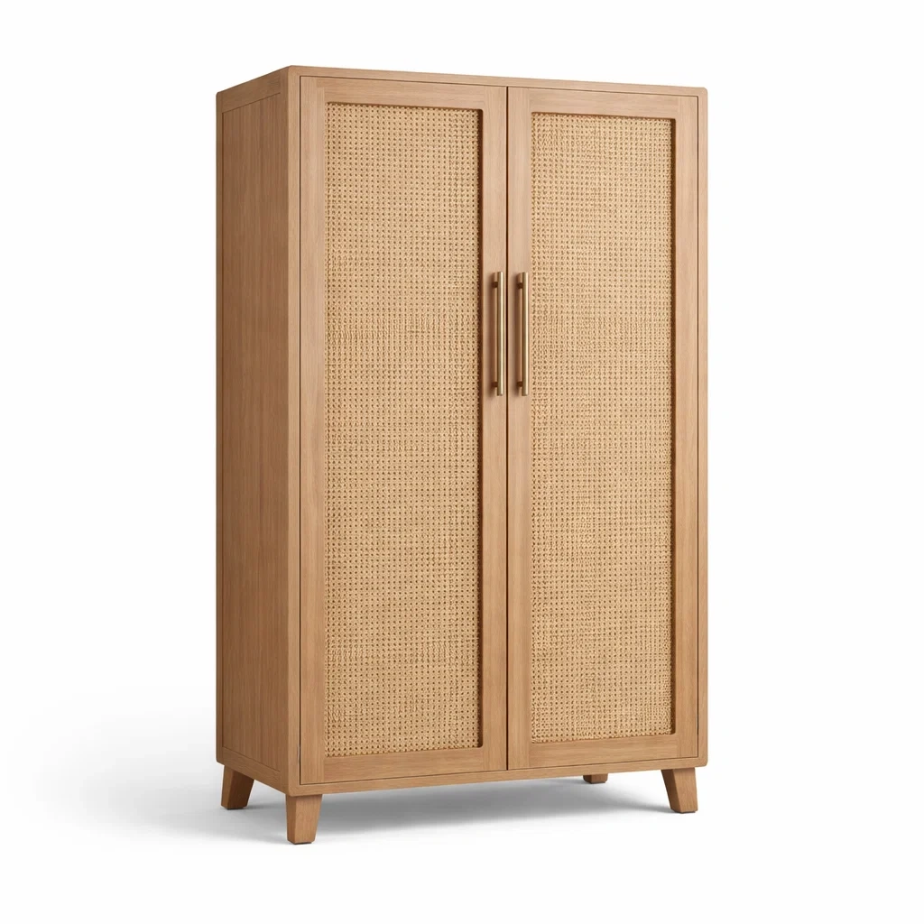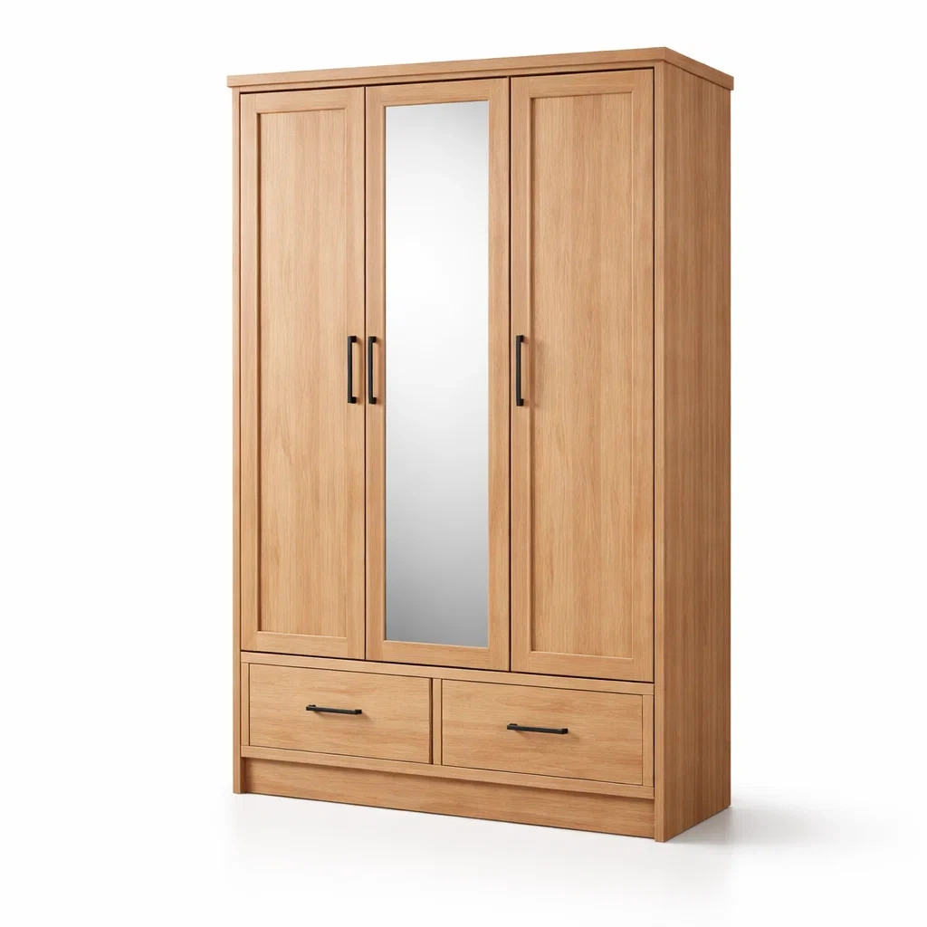 Armoire en bois composite chêne beige avec portes et tiroirs