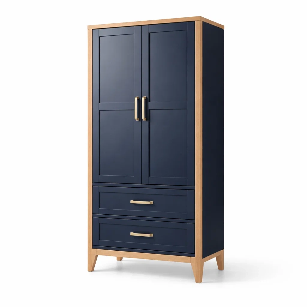 Matériau : Structure en chêne massif, panneaux en MDF pour les portes et tiroirs.