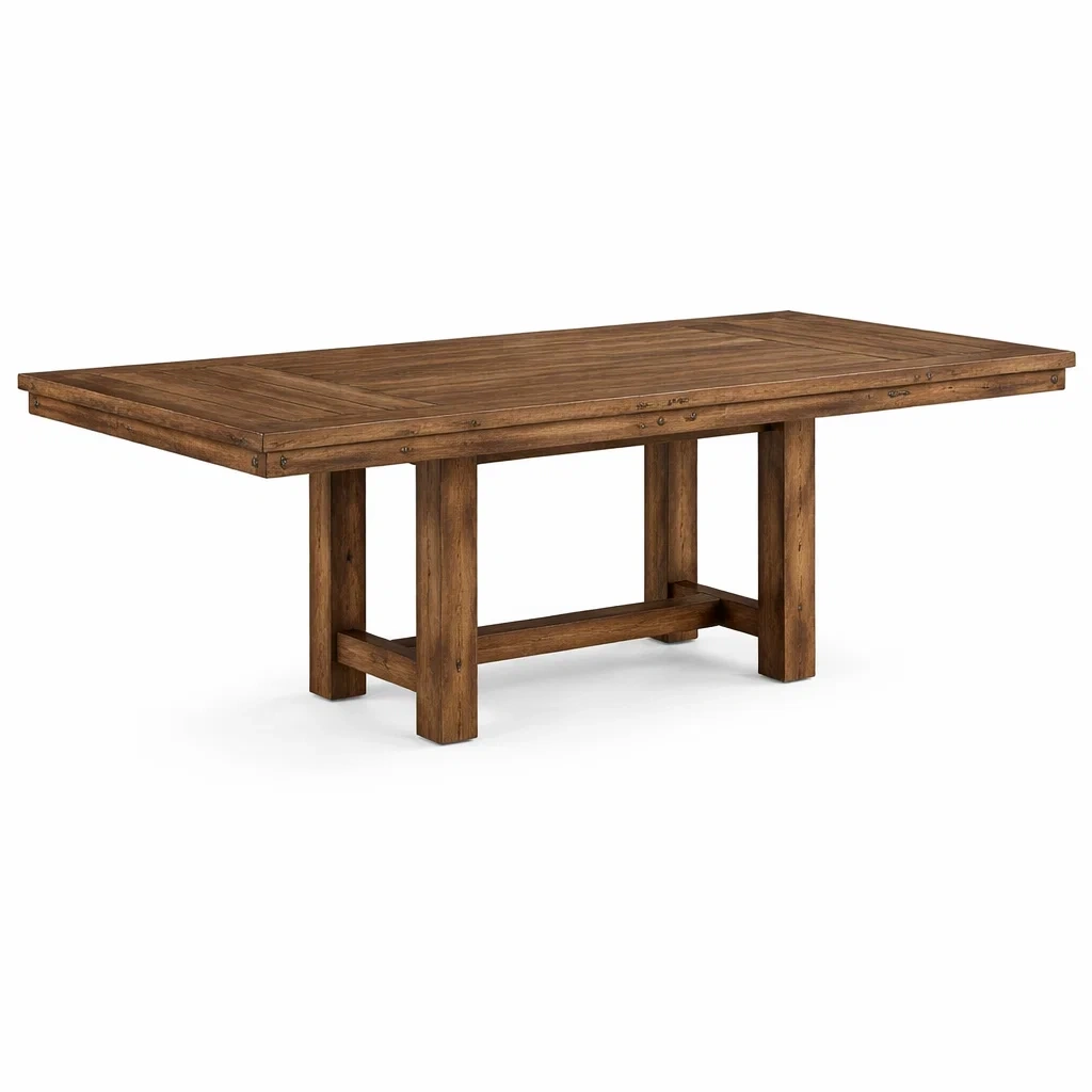 Cette table à manger est fabriquée en chêne massif, offrant robustesse et durabilité. Ses dimensions sont de 200 cm de long, 100 cm de large et 75 cm de haut. Sa couleur marron chaude lui confère un style naturel et intemporel. Capacité de charge maximale : 100 kg.