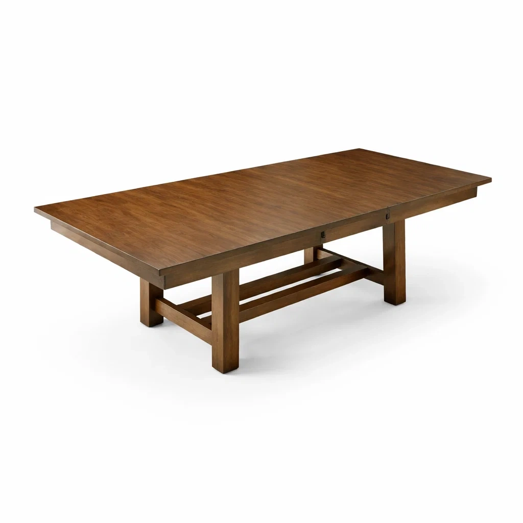 Table à manger extensible fabriquée en chêne massif. Ses dimensions sont de 200 cm de longueur, 100 cm de largeur et 75 cm de hauteur. La table est de couleur brune et de forme rectangulaire, avec une fonction extensible.