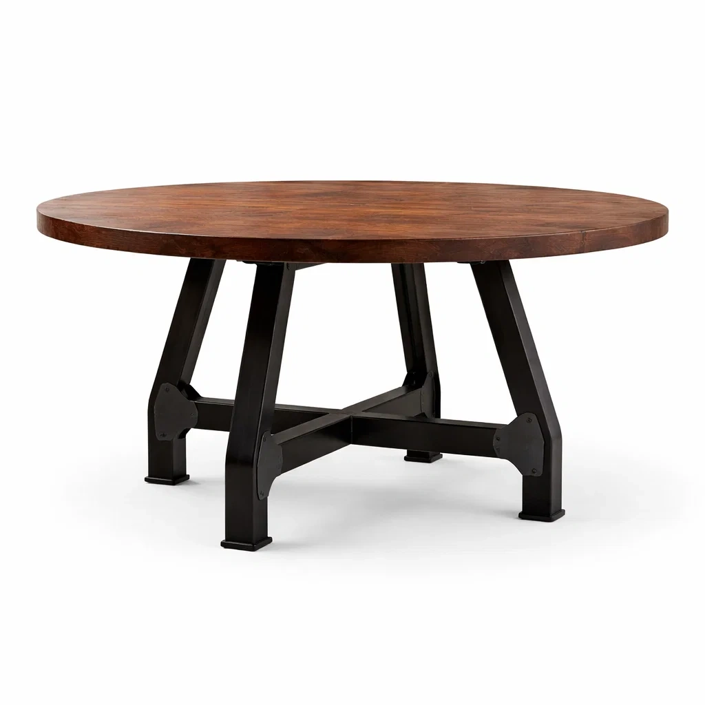 Dimensions : Hauteur 76 cm, diamètre 150 cm, épaisseur du plateau 5 cm.