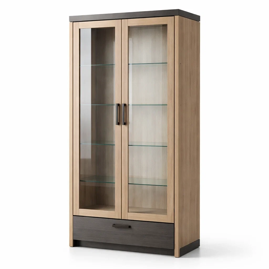 Structure principale : Panneaux de fibres à densité moyenne plaqué bois. Portes : Verre trempé de 4 mm. Tiroir : Panneaux de fibres à densité moyenne avec finition mélaminée.